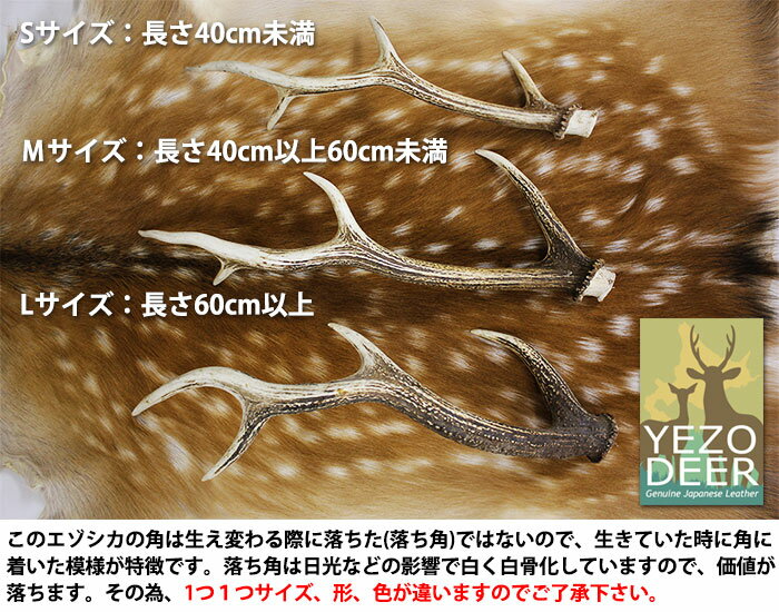 商品説明このエゾシカの角は生え変わる際に落ちた(落ち角)ではないので、生きていた時に角に着いた模様が特徴です。